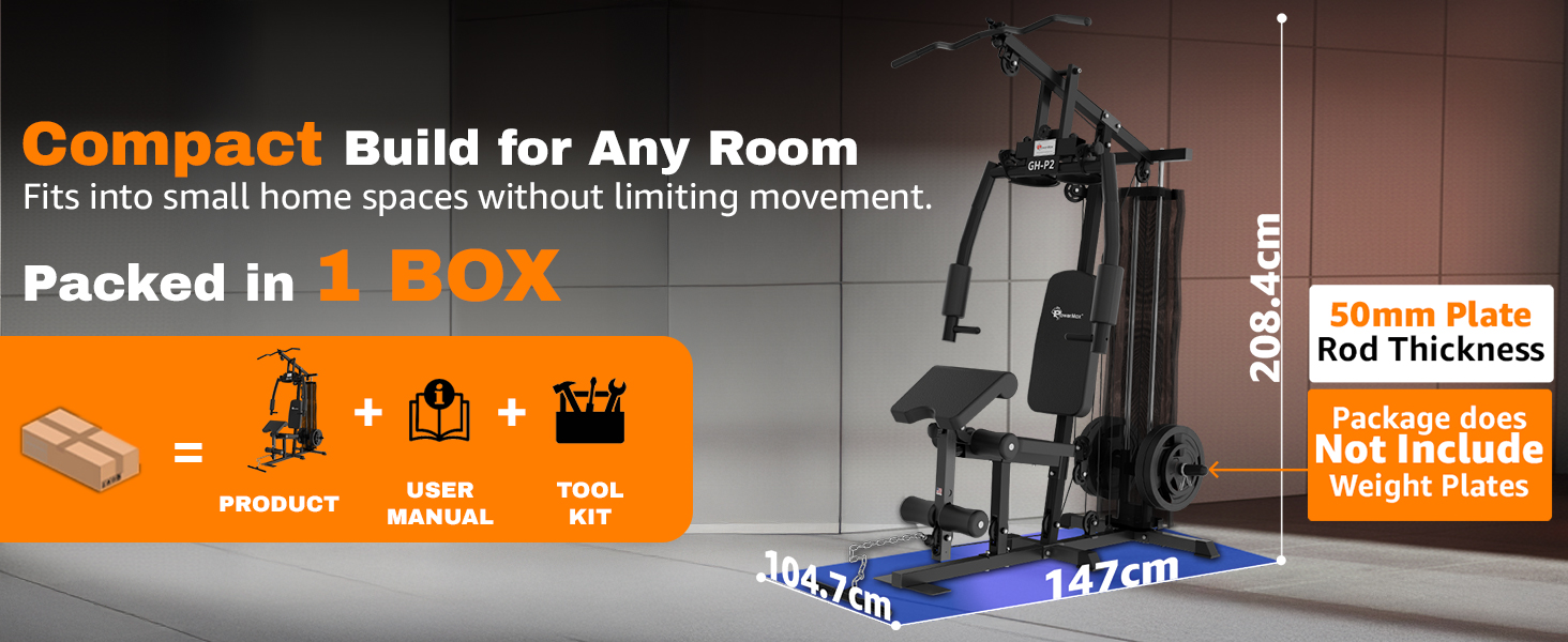 Despite its strength, the GH-P2 fits comfortably into most home spaces, with dimensions of 1470x1047x2084mm. It's shipped in one box with a net weight of 53KG and gross weight of 58KG, making it easy to manage during setup.