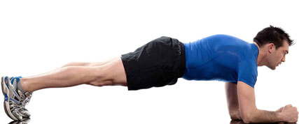 Start in forearm plank position. Make sure your elbows are on the ground directly underneath your shoulders. Keep your feet hip width apart and have a flat back and head in a neutral position. Do not forget to breathe while doing this.