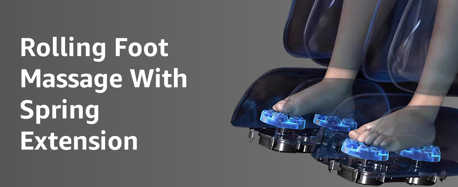 The PMC-2000 includes a foot massage feature with spring extension to accommodate various leg lengths, ensuring a comfortable fit for all users. The foot rollers work on acupuncture points, providing relief from foot pain and promoting relaxation from the feet up. This feature is especially beneficial for those who spend long hours on their feet, offering relief from fatigue and soreness.