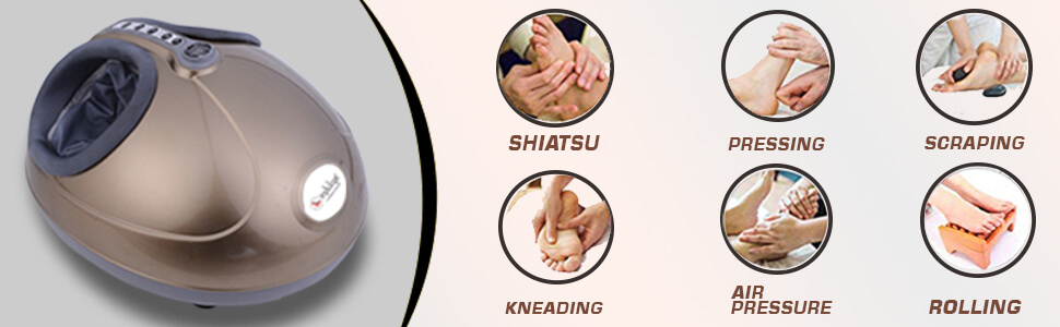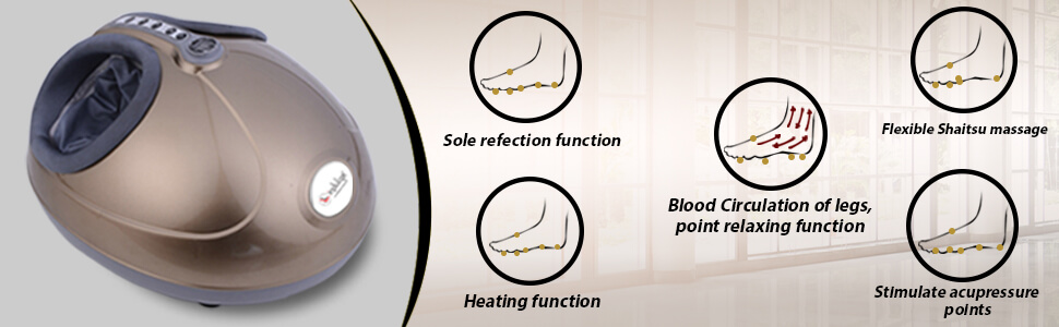 The Indulge IF-8010 Leg Massager machine is available in single golden color. This machine is a high-end leg massager; with the unique air pressing function of massager relieves the pain of the foot and relaxes tired muscles. It also offers the scrapping function of massager that ensures complete relief on pain effects of Myalgia (muscle or group of muscles) and chronic pain and improves blood stasis and inflammation. The kneading functions gives the most relaxing and revitalizing massages to foot in order to release pain and the heating function sole dilates the vessels and allows blood to more easily stream through veins and more oxygen is absorbed by the healing tissues.