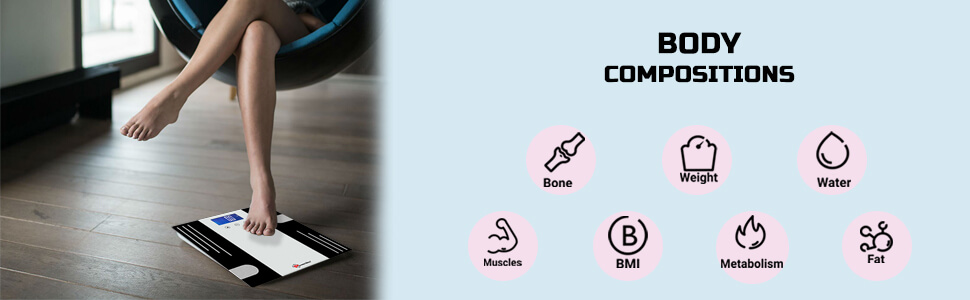Measure | Body fat, Body hydration, Body muscle, Body bone, Calories indication, BMI Indication (Somatotype judgement) |