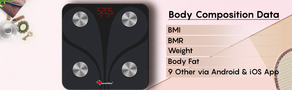 • Working in Sync with its companion app, the Powermax BCA-130 Bluetooth Smart Scale accurately measures, calculates, and analyses essential body composition like Weight, Body Fat, Bone Mass, BMR and more.