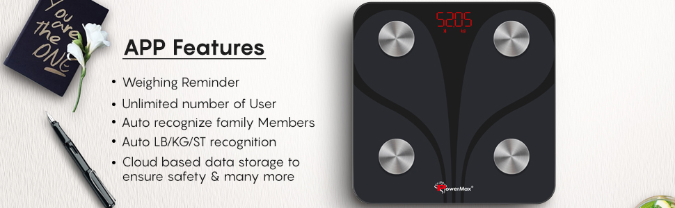 • Support Unlimited Users to share one smart scale to record their own data on an APP with Auto User Detection