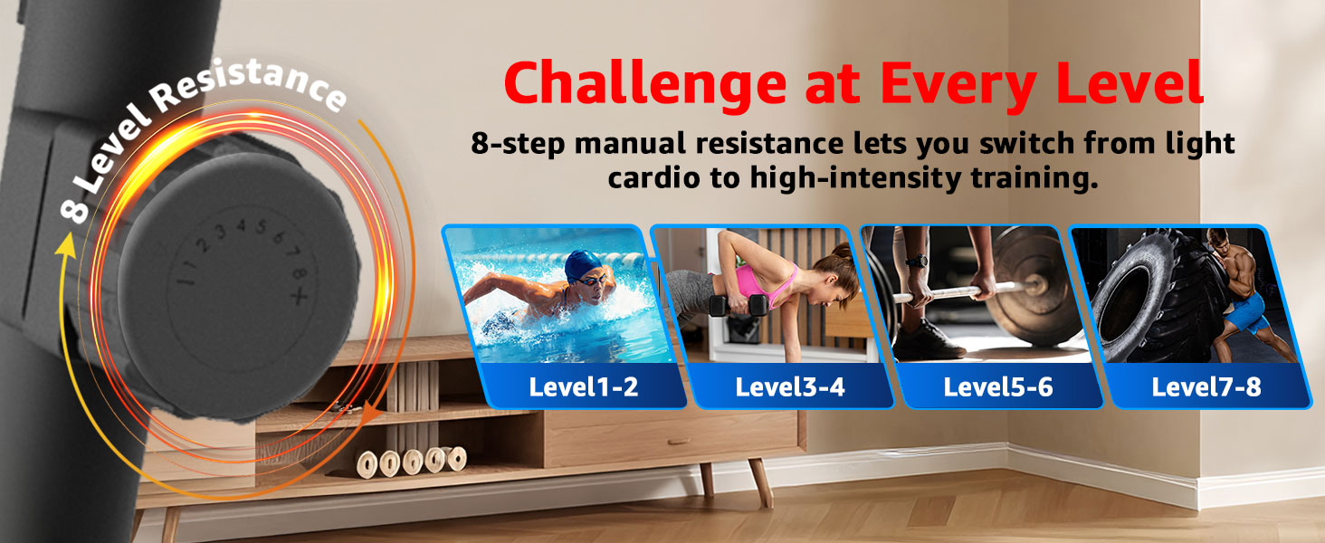 The BR-400 comes equipped with a durable belt-driven flywheel system that minimizes noise and maximizes efficiency. Its 30.5 cm stride length ensures a smooth cycling motion, perfect for long sessions or high-intensity bursts. With manual magnetic resistance control, you can easily switch between 8 challenge levels to suit your training goals, whether you're aiming for calorie-burning rides or endurance-focused workouts. Whether you're a beginner or a seasoned fitness enthusiast, the BR-400 adapts to your intensity with seamless transitions - all in near silence.