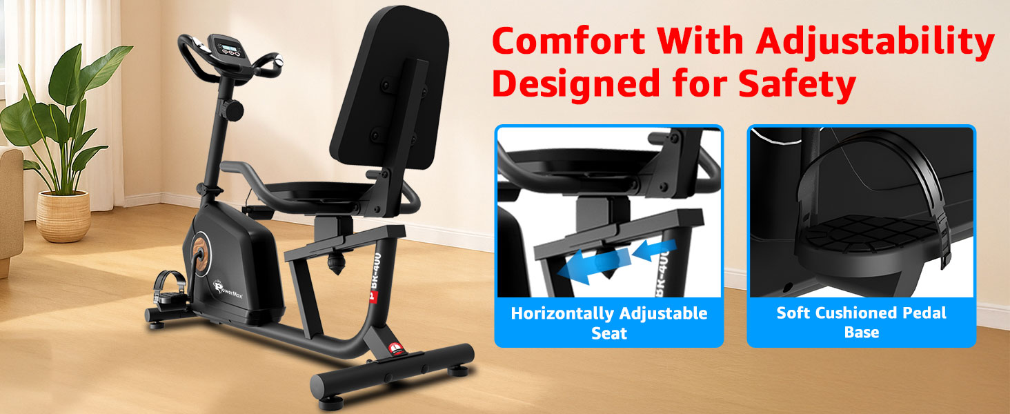 Built with comfort in mind, the BR-400 features a vertically adjustable PVC seat that easily accommodates multiple user heights. It is equipped with P+P and Q235 alloy pedals that include adjustable foot straps to ensure secure and comfortable foot placement during workouts. Foam-covered fixed handlebars provide a firm and sweat-resistant grip, offering full stability and posture support, whether you're seated or pushing through high-intensity sprints. The ergonomic design ensures proper alignment, allowing you to stay balanced and focused throughout your ride.