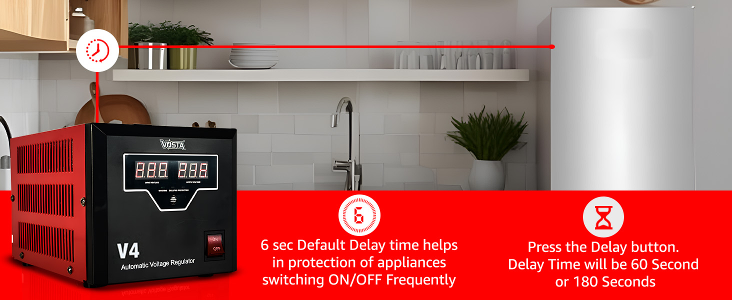 Engineered to operate seamlessly with an input range of 180~270 VAC, the Vosta V4 stabilizer delivers a consistent output of 220 VAC. This makes it perfect for regions with fluctuating power supply, ensuring the safety and longevity of your appliances.