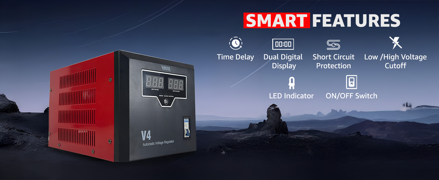 Integrated with a 100% copper toroidal transformer, the Vosta V4 stabilizer guarantees superior performance with over 95% efficiency. The zero-cross-switching technology ensures smooth and precise voltage regulation, reducing energy consumption and enhancing durability.