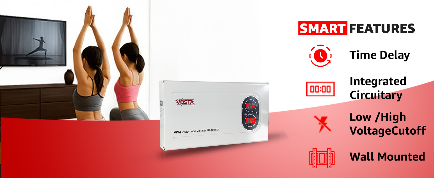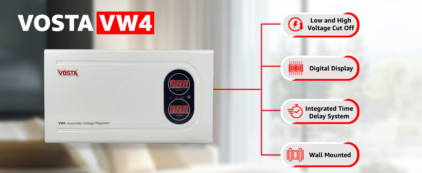 Ensure consistent power supply and safeguard your appliances with the Vosta VW4 4KVA Digital Voltage Stabilizer. Engineered for heavy treadmills and high-power home appliances, this stabilizer delivers unmatched efficiency and reliability in voltage regulation.