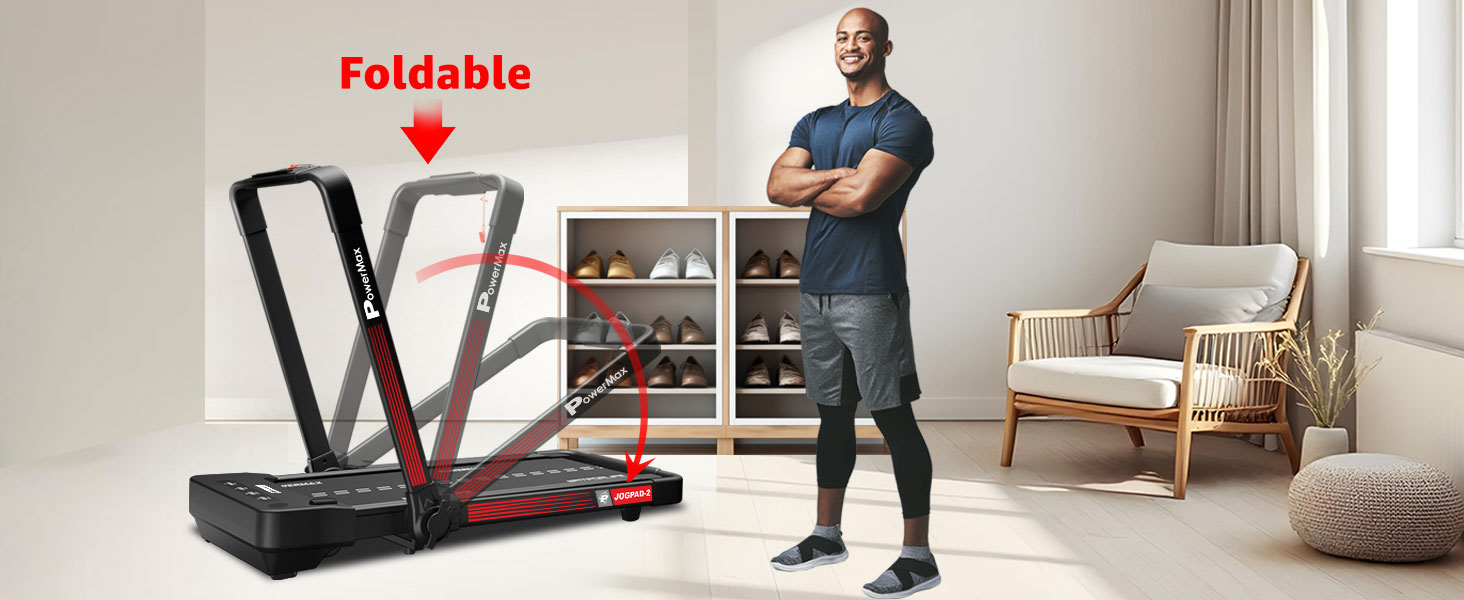The PowerMax JOGPAD-2 is a powerful and space-saving treadmill built for modern lifestyles. It features a robust 4.0HP DC motor, a fold-flat design, and smart remote control operation. With a 120KG max user weight and compact portability, it delivers convenience without compromising performance.