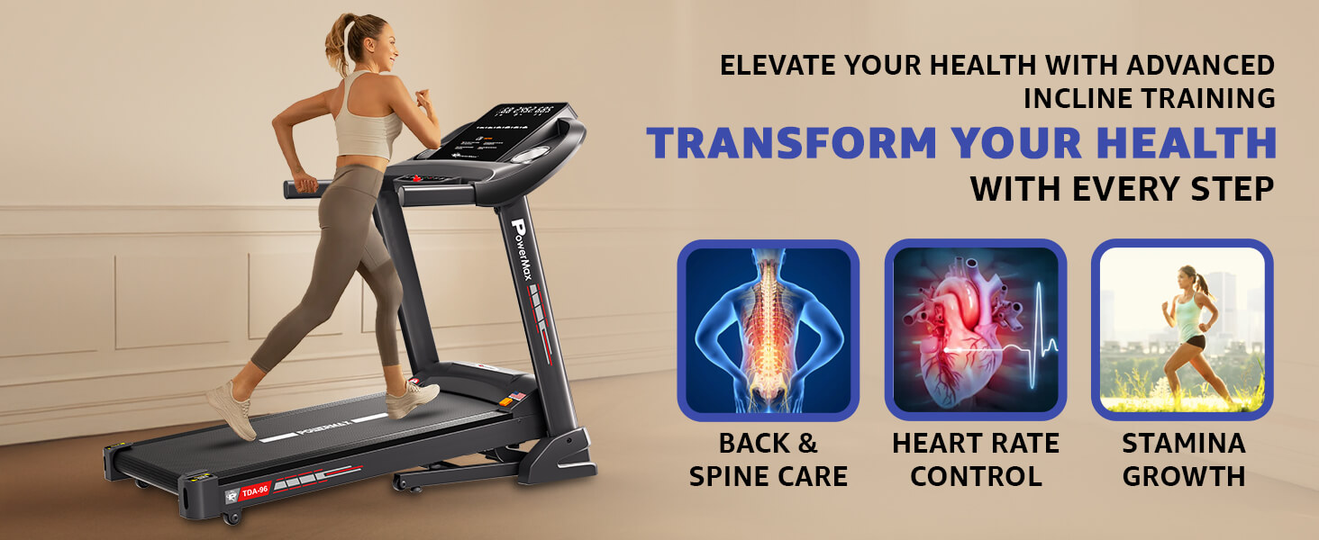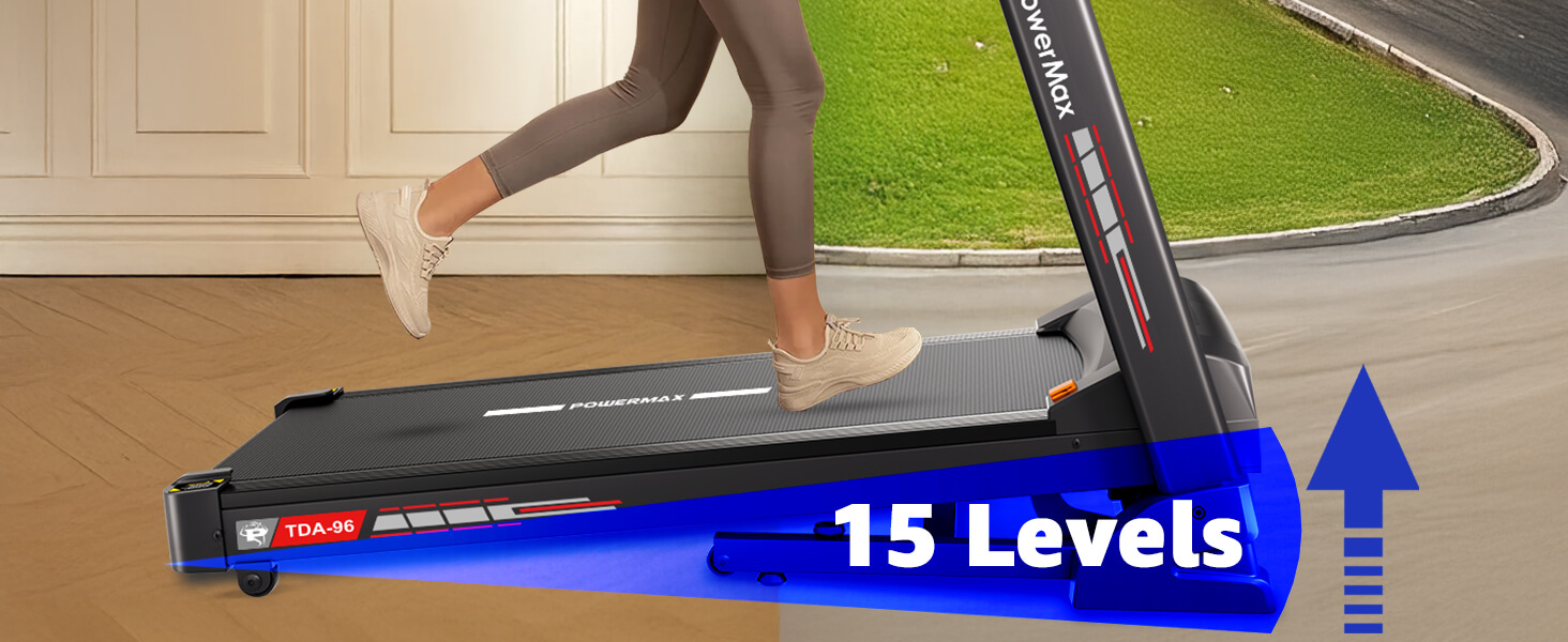 Experience premium-quality cardio workouts at home with the TDA-96 Motorized Treadmill, engineered for fitness enthusiasts who demand durability and versatility. Equipped with a robust 4.0HP DC Motor, this treadmill for home use allows speeds ranging from 1.0 to 12 km/hr and supports a maximum user weight of 110KG, making it a reliable option for users of various fitness levels. Its diamond wave running belt ensures stability and grip, while the 15-level auto incline feature simulates uphill training for enhanced calorie burn and cardio conditioning.