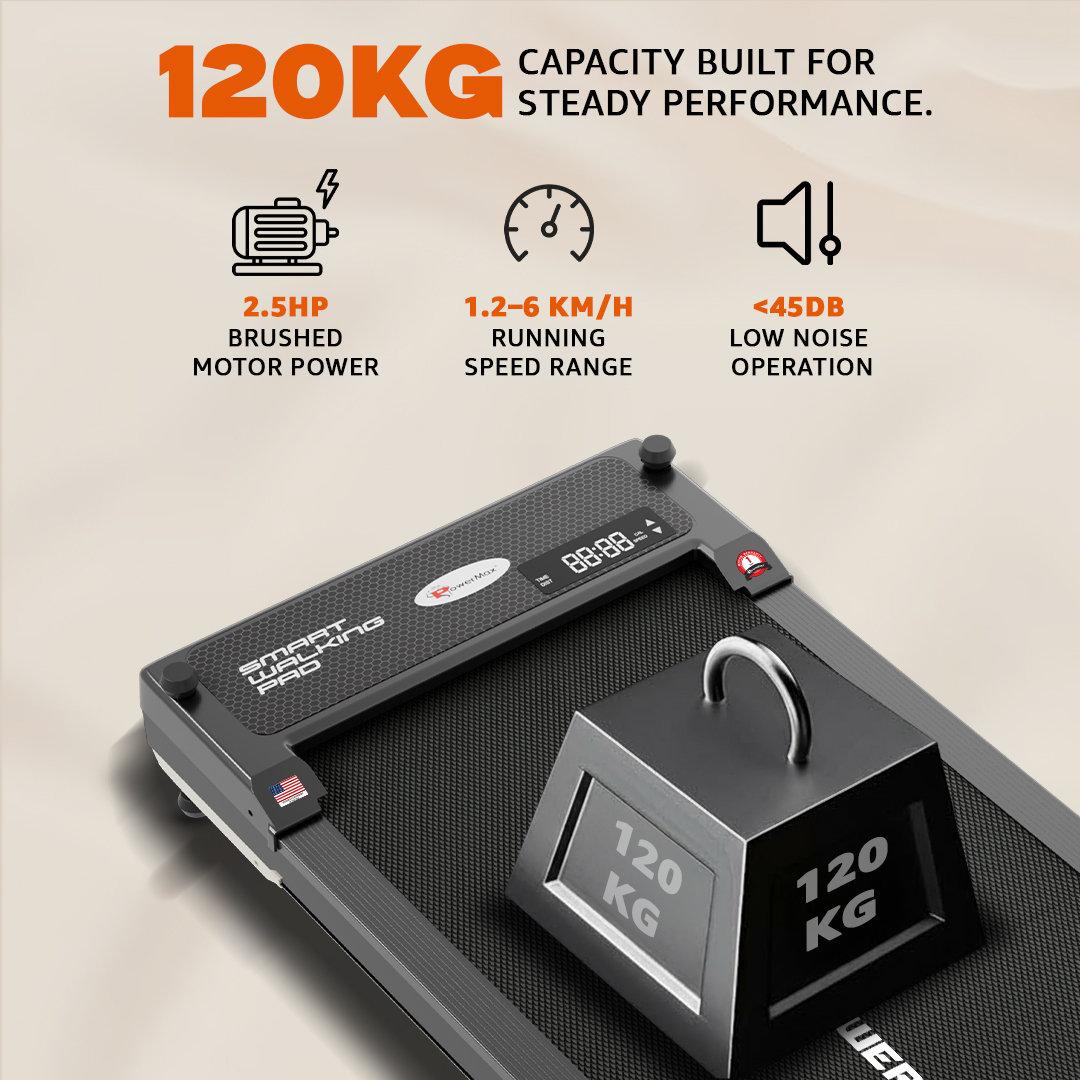 This treadmill is designed to offer a reliable and comfortable exercise experience suitable for home fitness use. It features a 2.5 HP brushed motor that supports steady walking and light jogging. The speed displayed and delivered ranges from 1.2 to 6 km/h on the A side, and 0.8 km/h, 1 km/h, and 2 km/h on the B side, making it suitable for individuals seeking casual workouts or gentle training routines. The machine supports users weighing up to 120 kg, ensuring a sturdy and stable platform for various fitness needs.