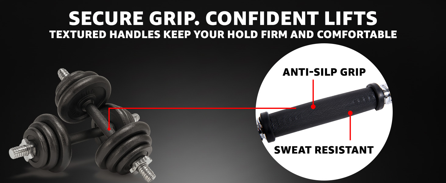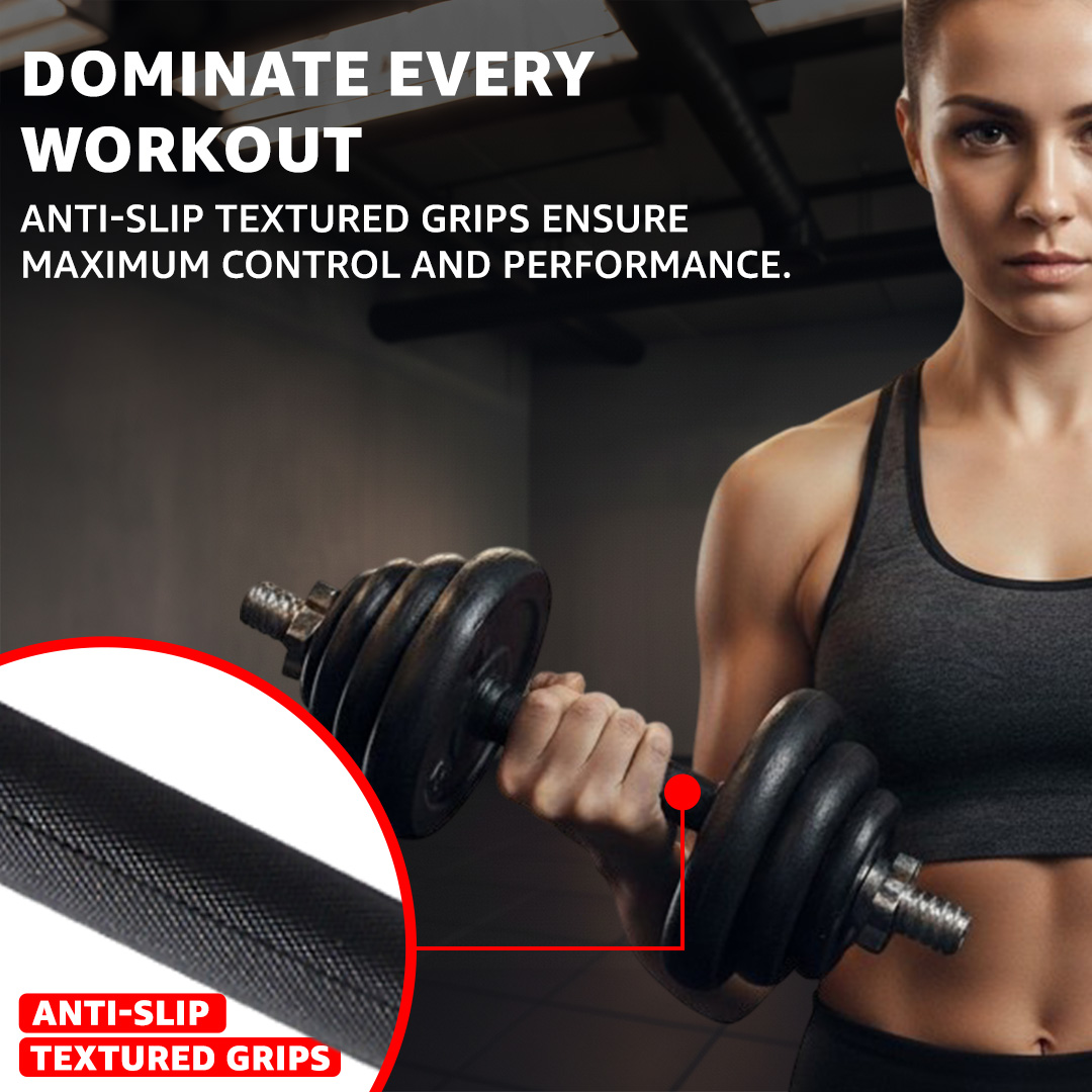 The included dumbbell and barbell bars feature anti-slip textured grips for enhanced safety and control. The ergonomic design ensures a comfortable hold, even during high-intensity sessions, reducing the risk of accidents and enhancing your workout experience.