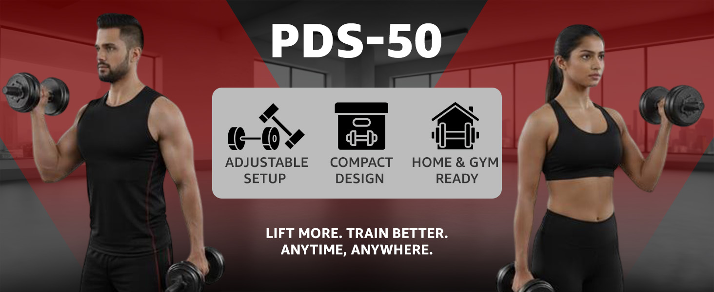 Despite its heavy-duty weight capacity, the PDS-50 set is designed with compactness in mind, with a total package dimension of 105 x 29.5 x 17 cm. Ideal for home gyms, this set provides professional-grade fitness equipment without occupying excessive space.