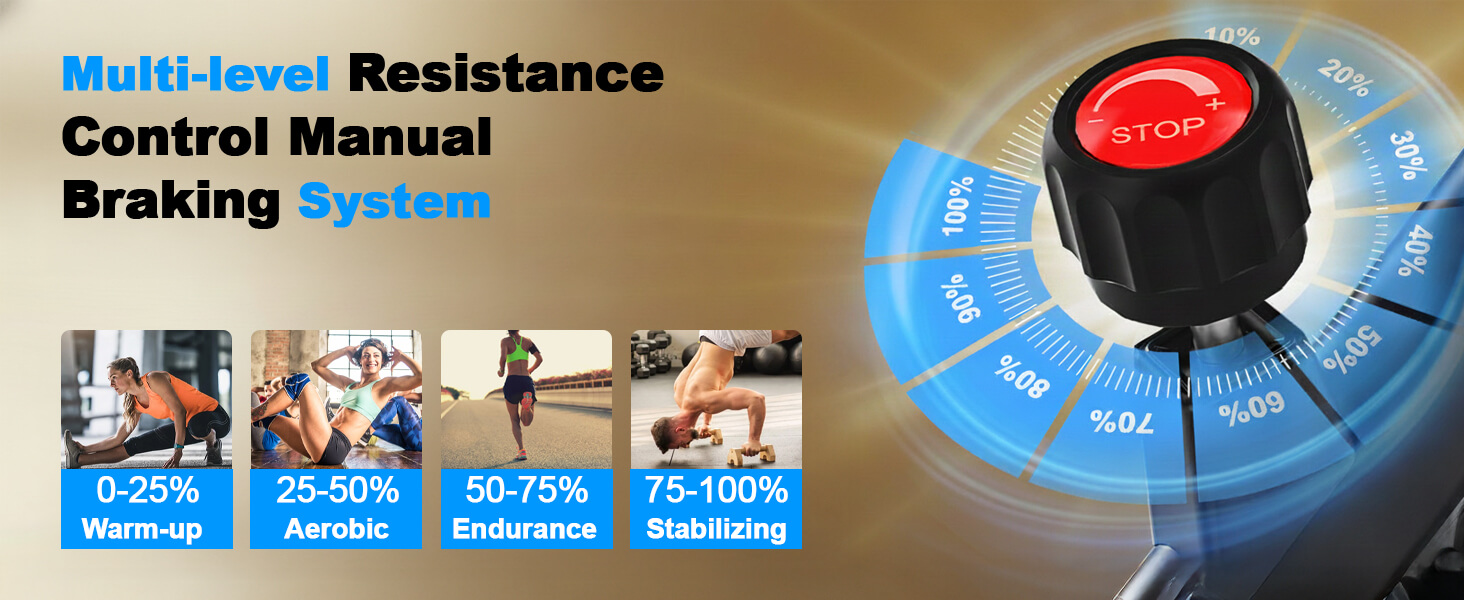 The bike features manual resistance control via an easy-to-use knob. You can increase or decrease the intensity of your workouts on the fly to suit your fitness goals. It also includes a manual brake system to ensure safe and responsive stopping.