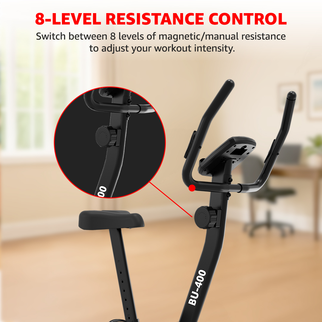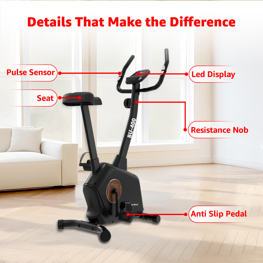 PowerMax Fitness BU-400 Upright Bike provides magnetic brake system.
