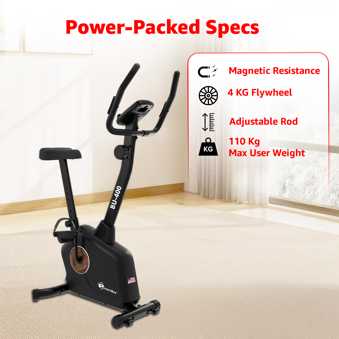 The Max User Weight PowerMax Fitness BU-400 Upright Bike can carry is 110 kilograms.