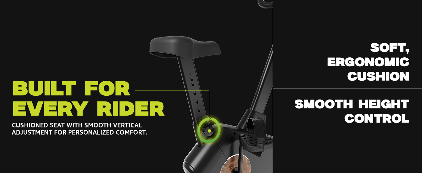 The Upright bike has the perfect comfort cushion seat and vertical adjustment.