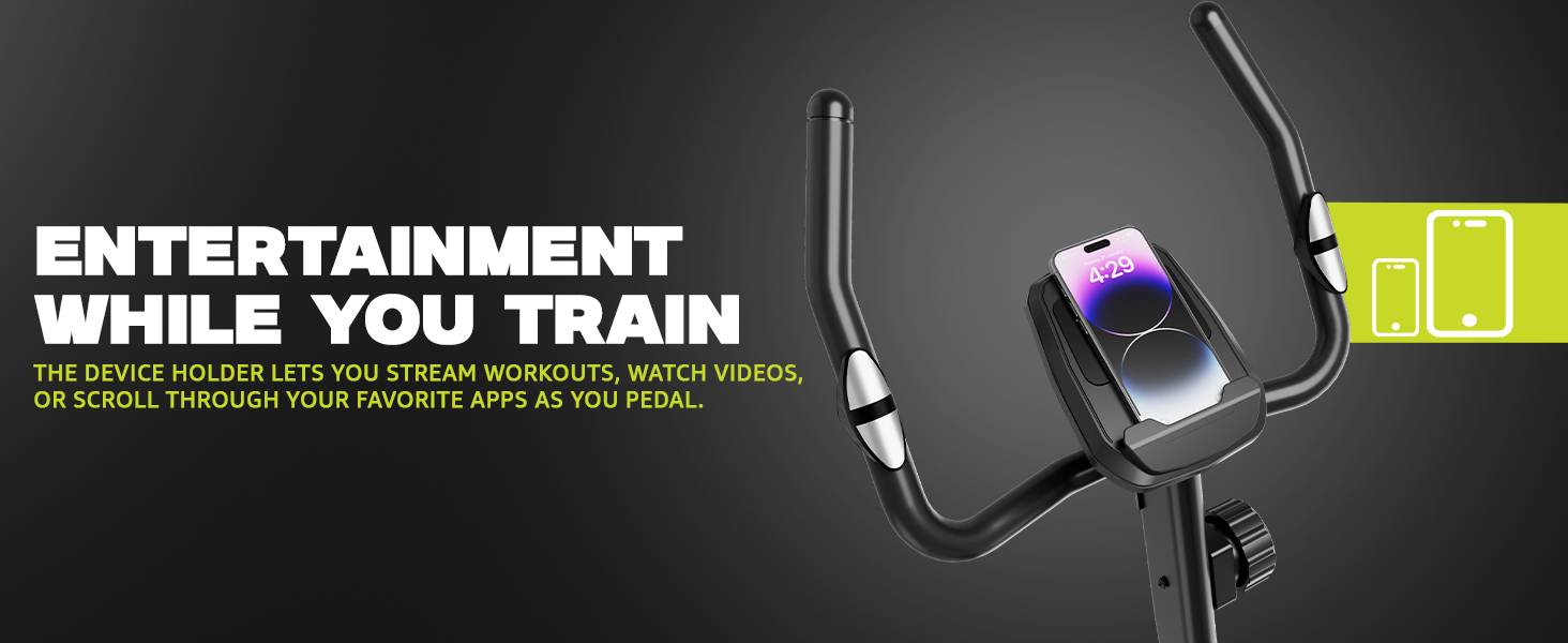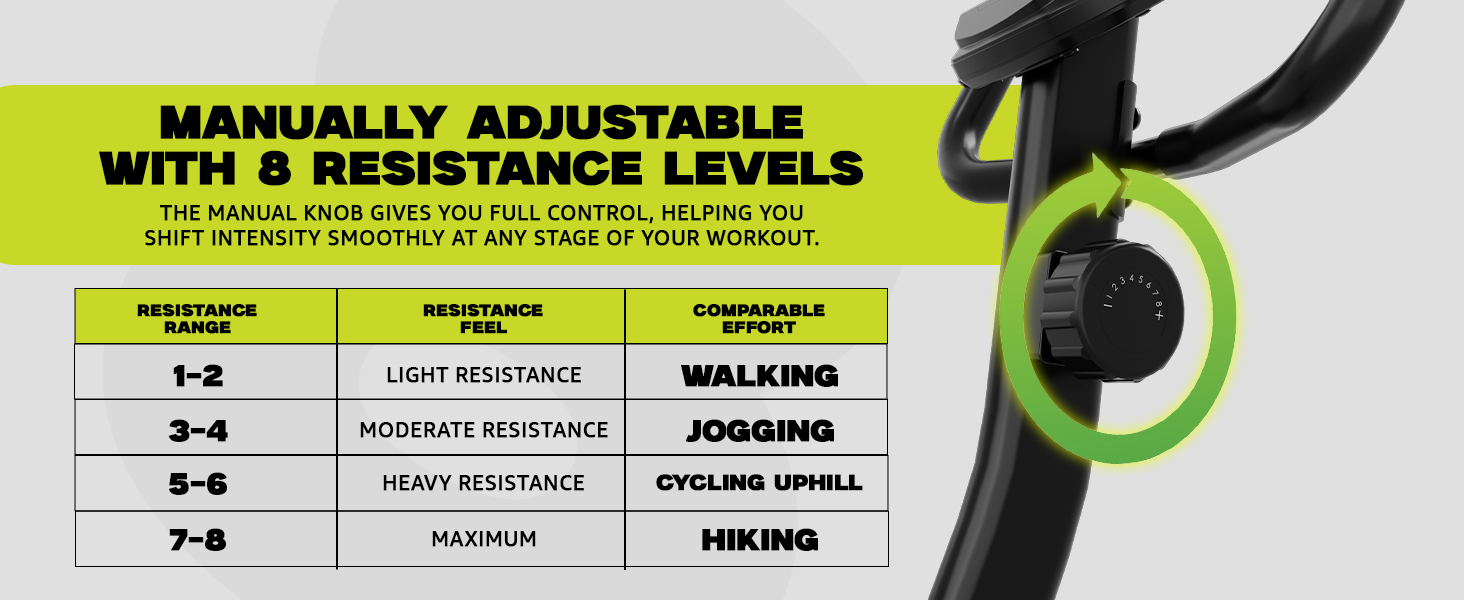 This upright bike resists magnetic adjustable tension control, that enables you to work out according to pressure you can resist cycling the pedals.
