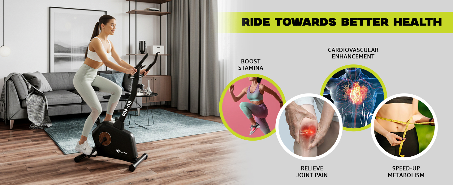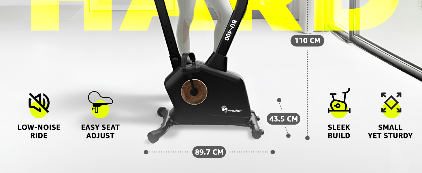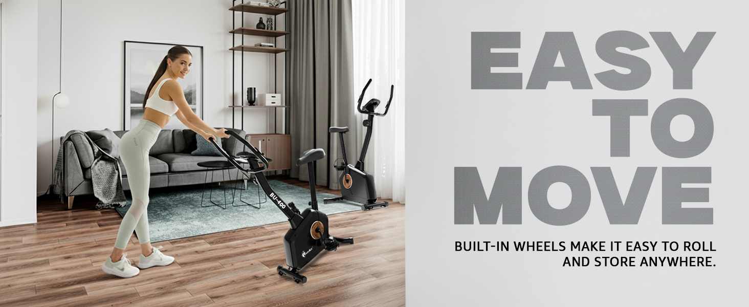 The PowerMax Fitness BU-400 Magnetic Upright Exercise Bike is ideal for home workouts. This attractive bike is a great way to get in shape. A smooth and silent belt system allows you to work out without disrupting others. The PowerMax Fitness BU-400 Upright exercise bike comes with a monitor that enables you to measure distance traveled, speed, odometer, time, and how many calories have been burned per session. Stylish and functional, the exercise upright bike with a cushioned adjustable seat is great for low-impact aerobic exercise. Requiring only a small area for use, the exercise bike can be set up and always ready for the next workout.