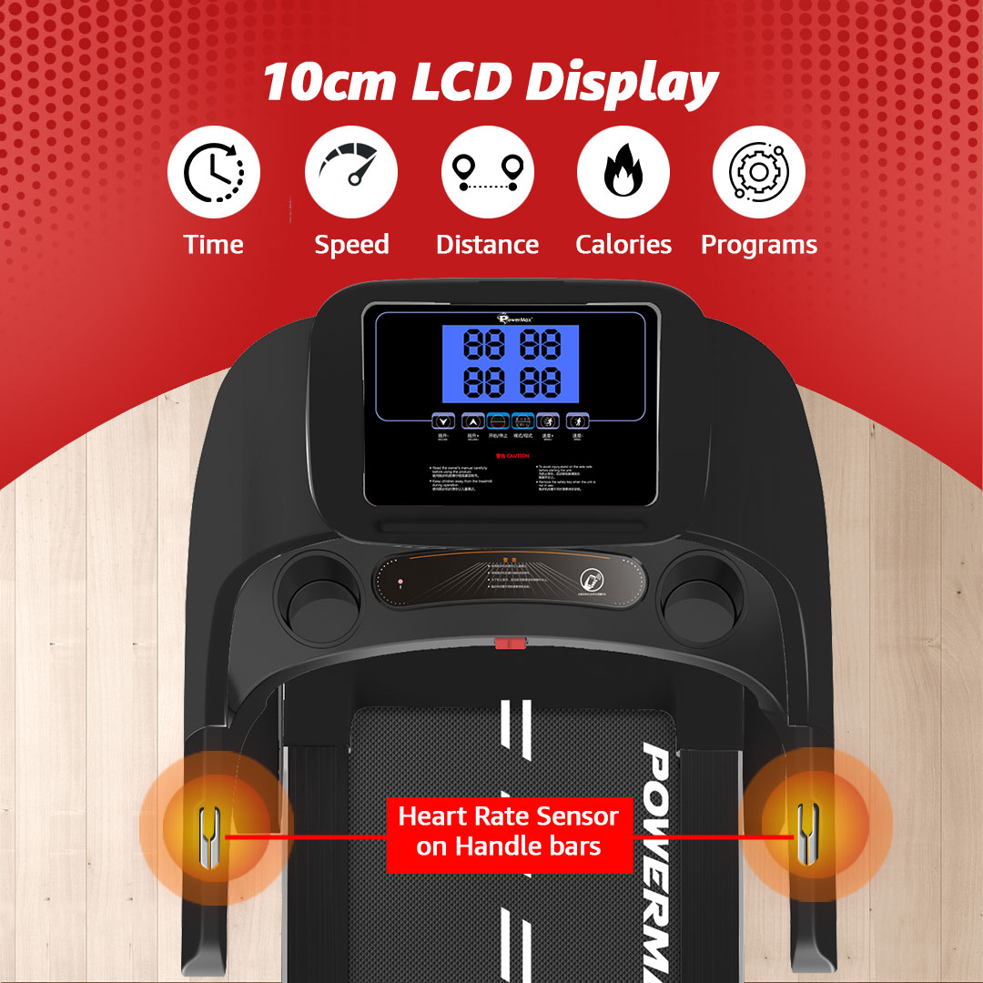 The 10cm LCD display provides essential workout information, including Time, Speed, Distance, Heart rate, Calories, and Program. This comprehensive display ensures you have all the necessary data at your fingertips to track and optimize your fitness sessions with the TD-A1 Motorized Treadmill. Its LCD control panel empowers speed control and brake activation, facilitating a seamless workout experience.