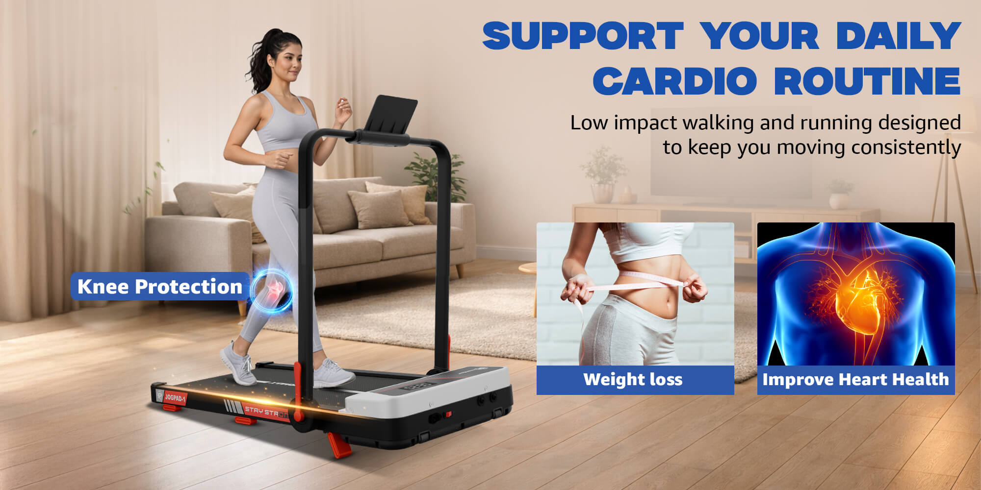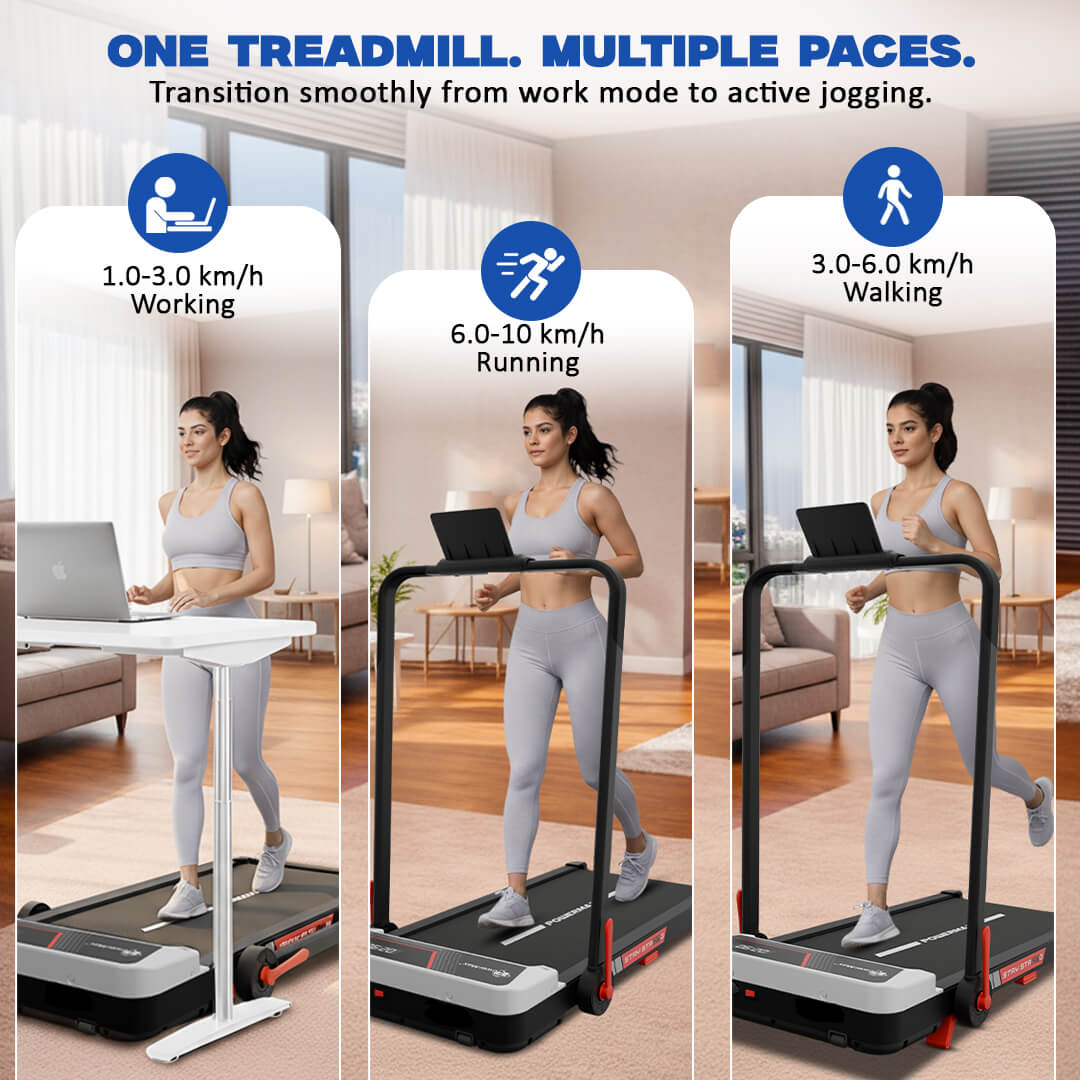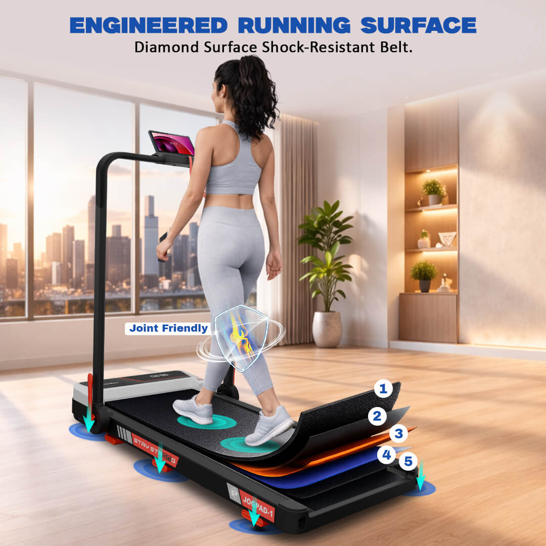 The JogPad-1 provides a speed range of 1.0–6 km/h for walking and up to 10 km/h for running, making it suitable for beginners as well as regular fitness users. Whether you need a walking treadmill for home workouts or a compact running machine in UAE, it offers consistent performance for everyday cardio training.