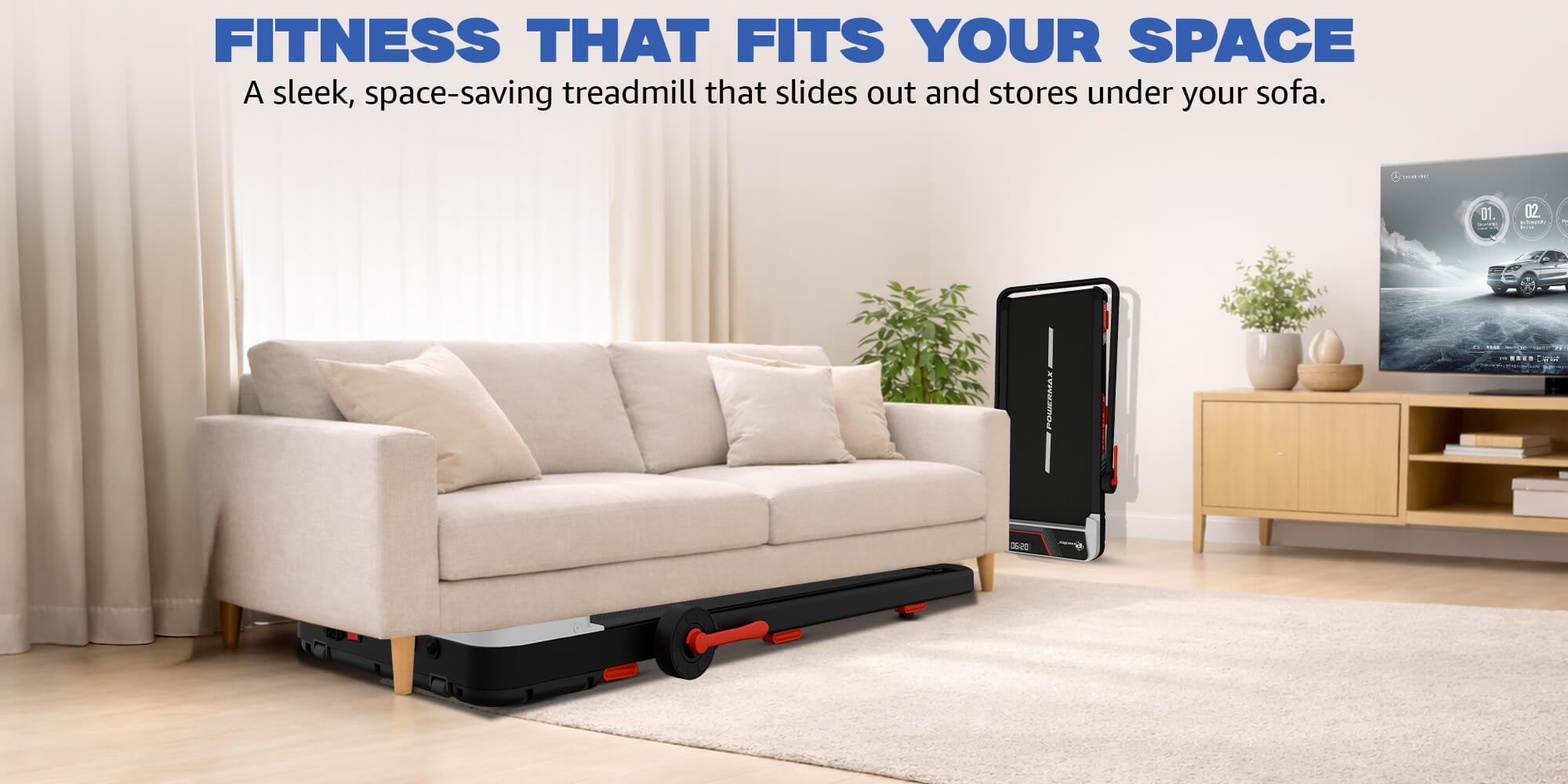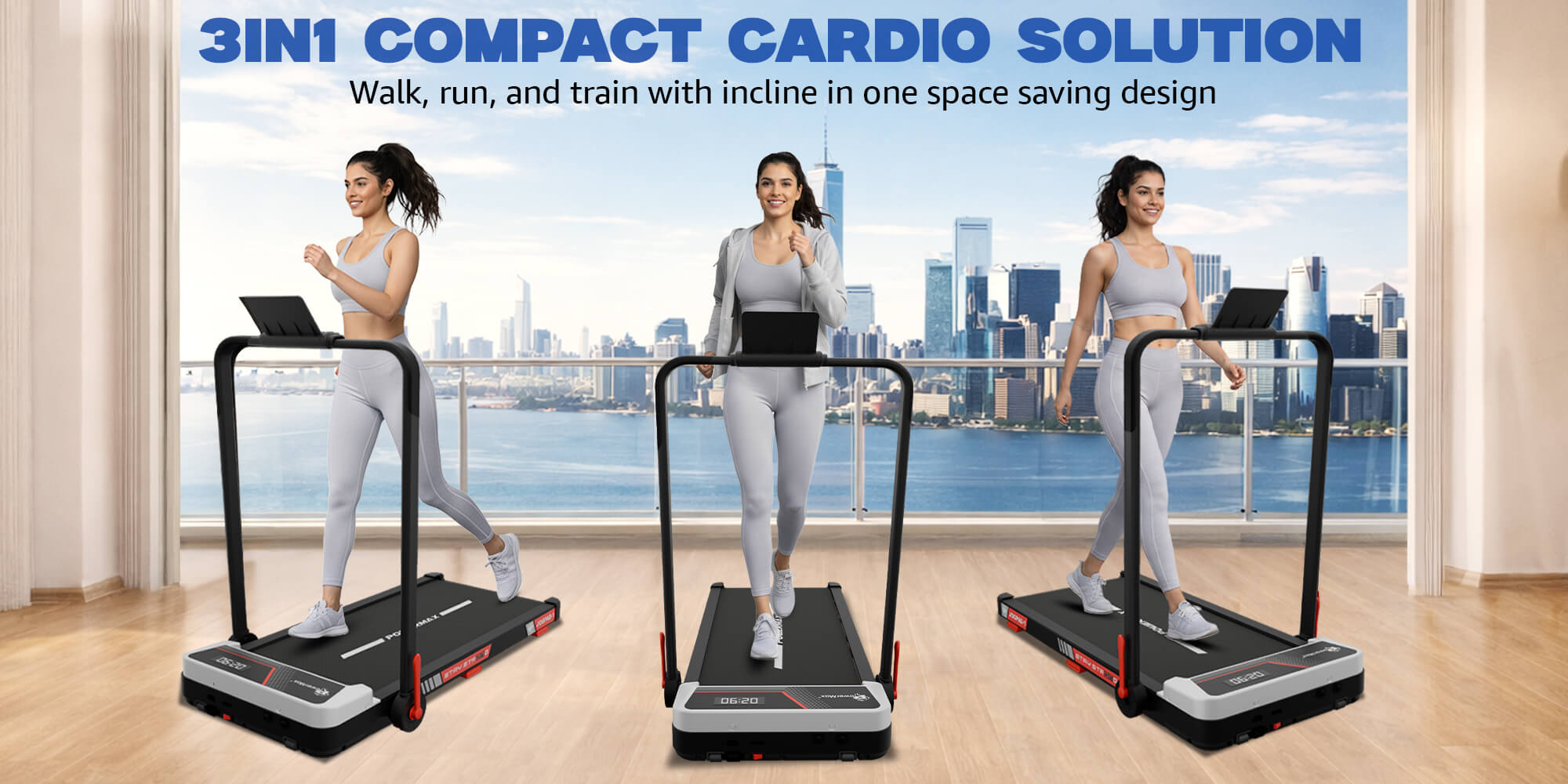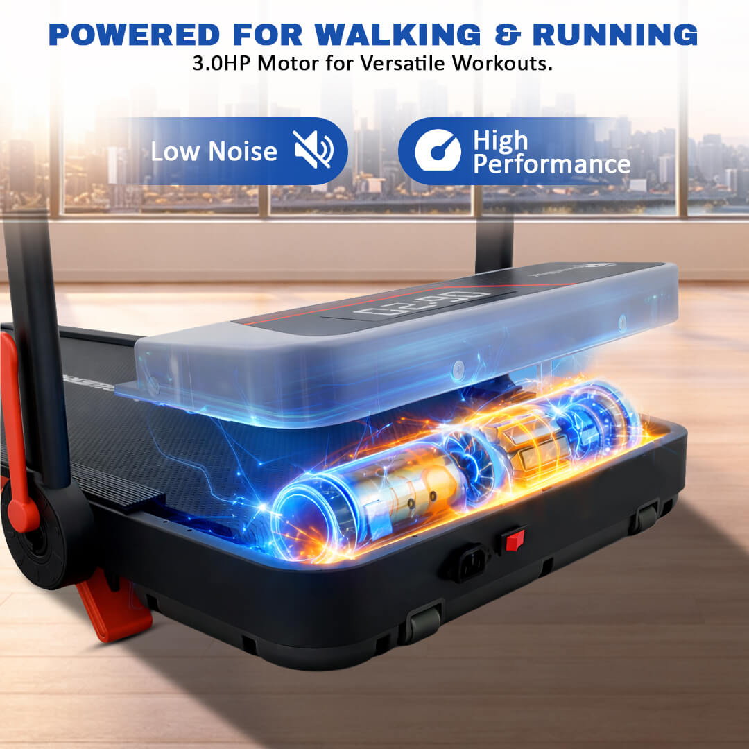 With a compact assembled size of 1120 × 565 × 990 mm, this compact treadmill for home use in UAE fits easily in bedrooms, living rooms, or small home gyms. The horizontal foldable design makes it easy to store when not in use, making it ideal for apartments and limited spaces.
