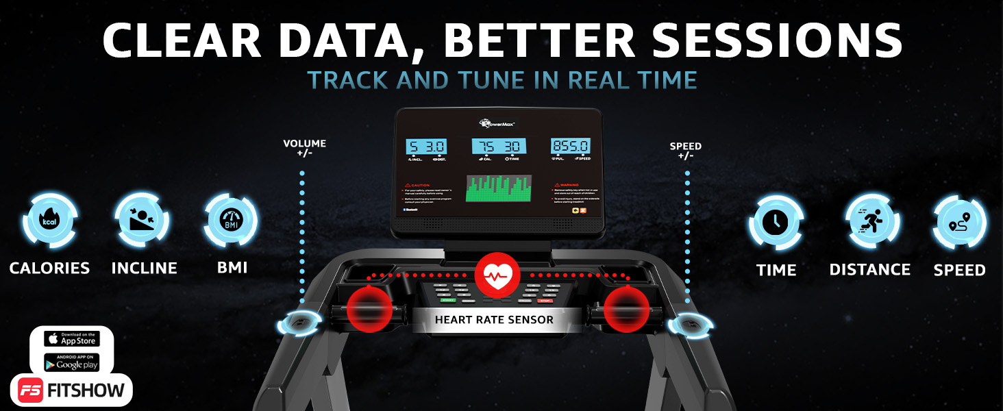 Stay motivated with 80 pre-set programs, a 4-LED display for real-time tracking, and built-in Hi-Fi speakers. Enjoy modern convenience with Bluetooth app control, USB charging, and a device holder for your iPad or mobile.