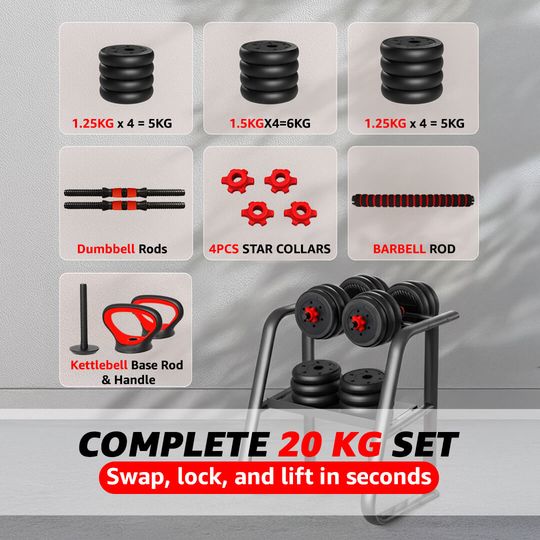 | Weight Plates | 2KG * 4, 1.5KG * 4, 1.25KG * 4 |