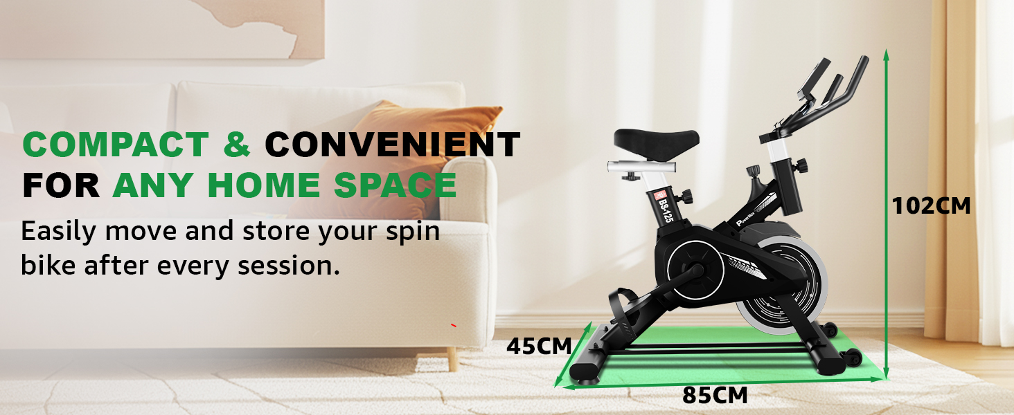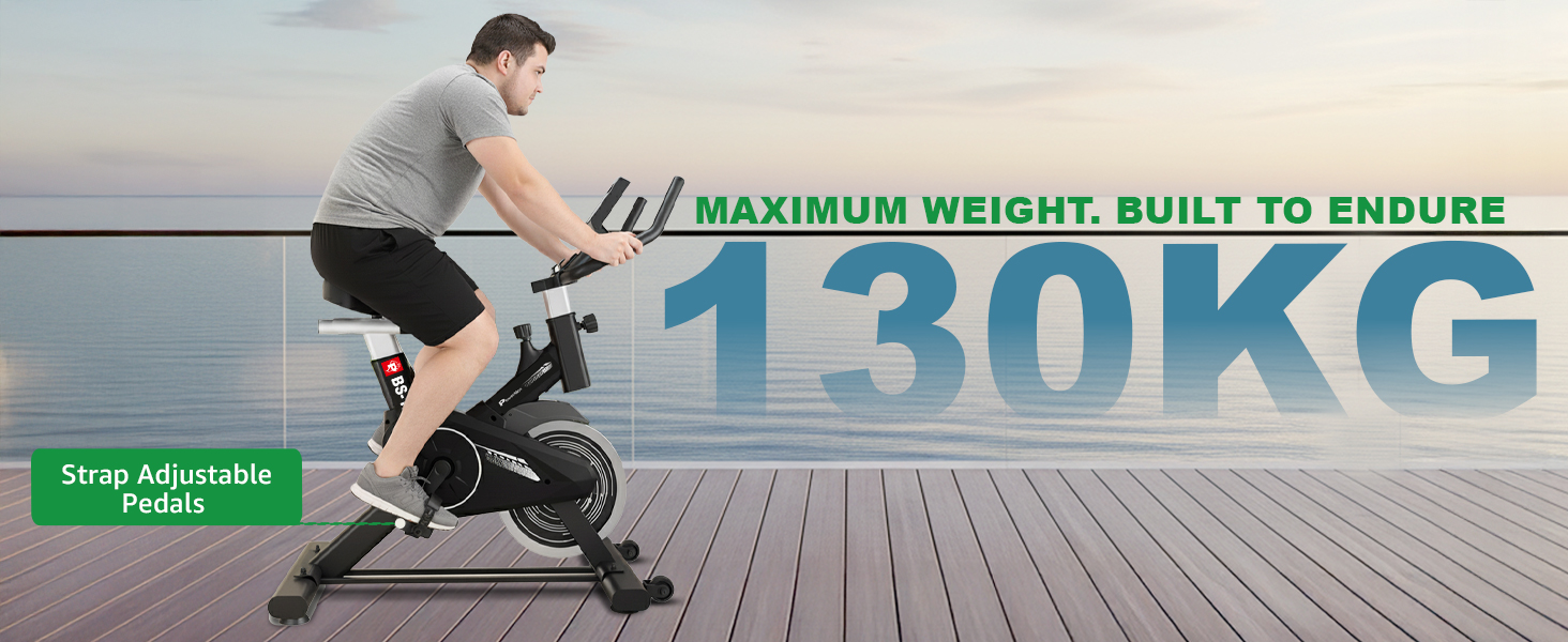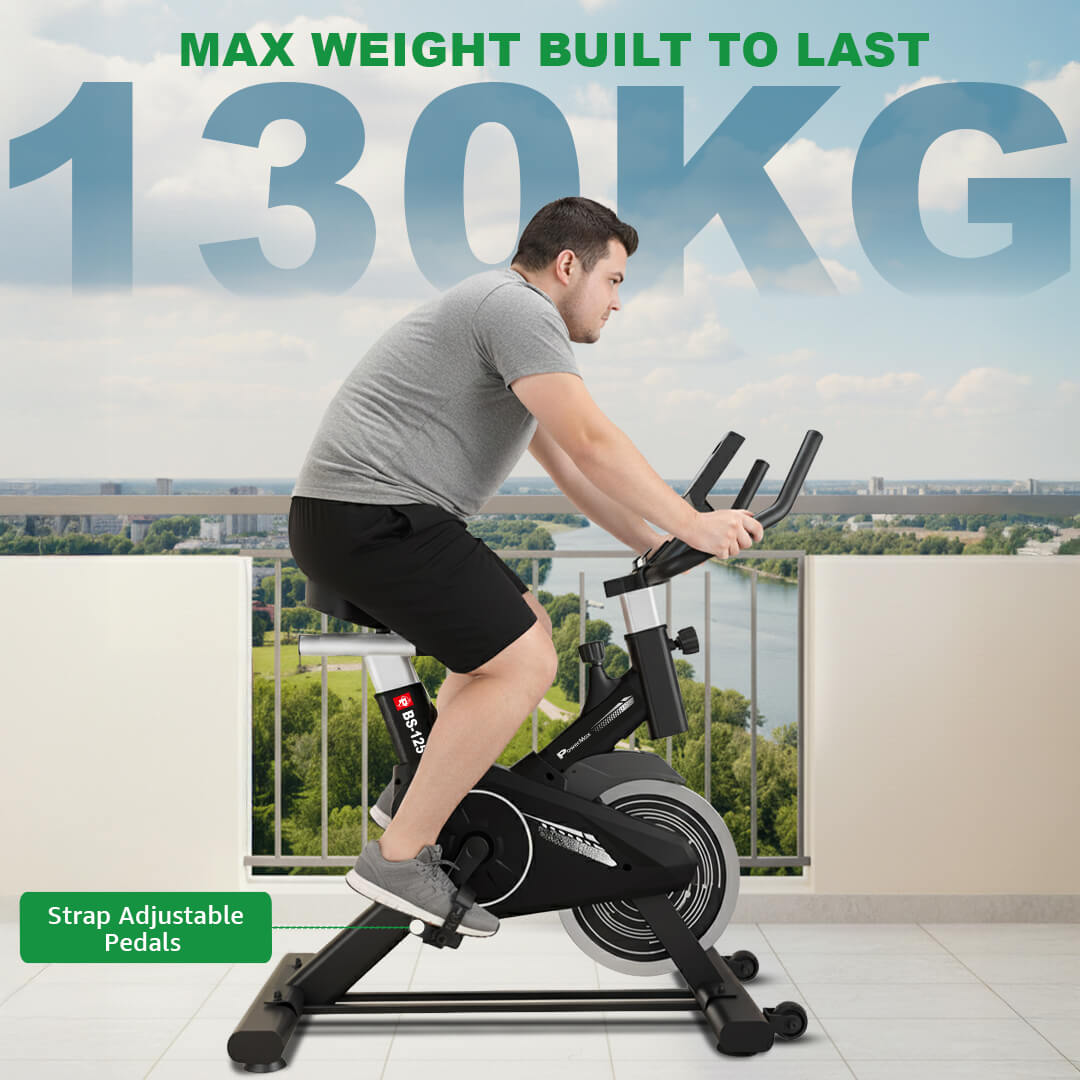 Built for durability and stability, the BS-125 Spin Bike supports a maximum user weight of 130KG. The heavy-duty steel frame ensures long-lasting performance, making it an ideal choice for home workouts.