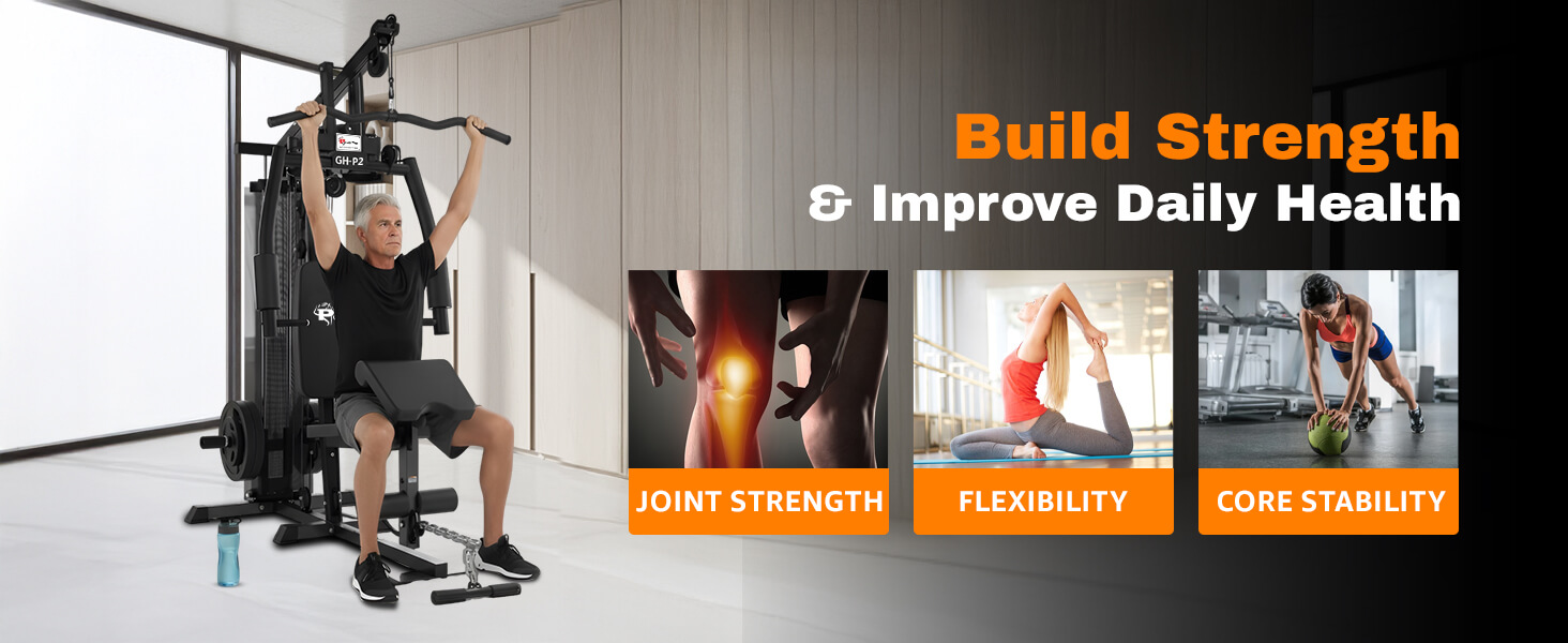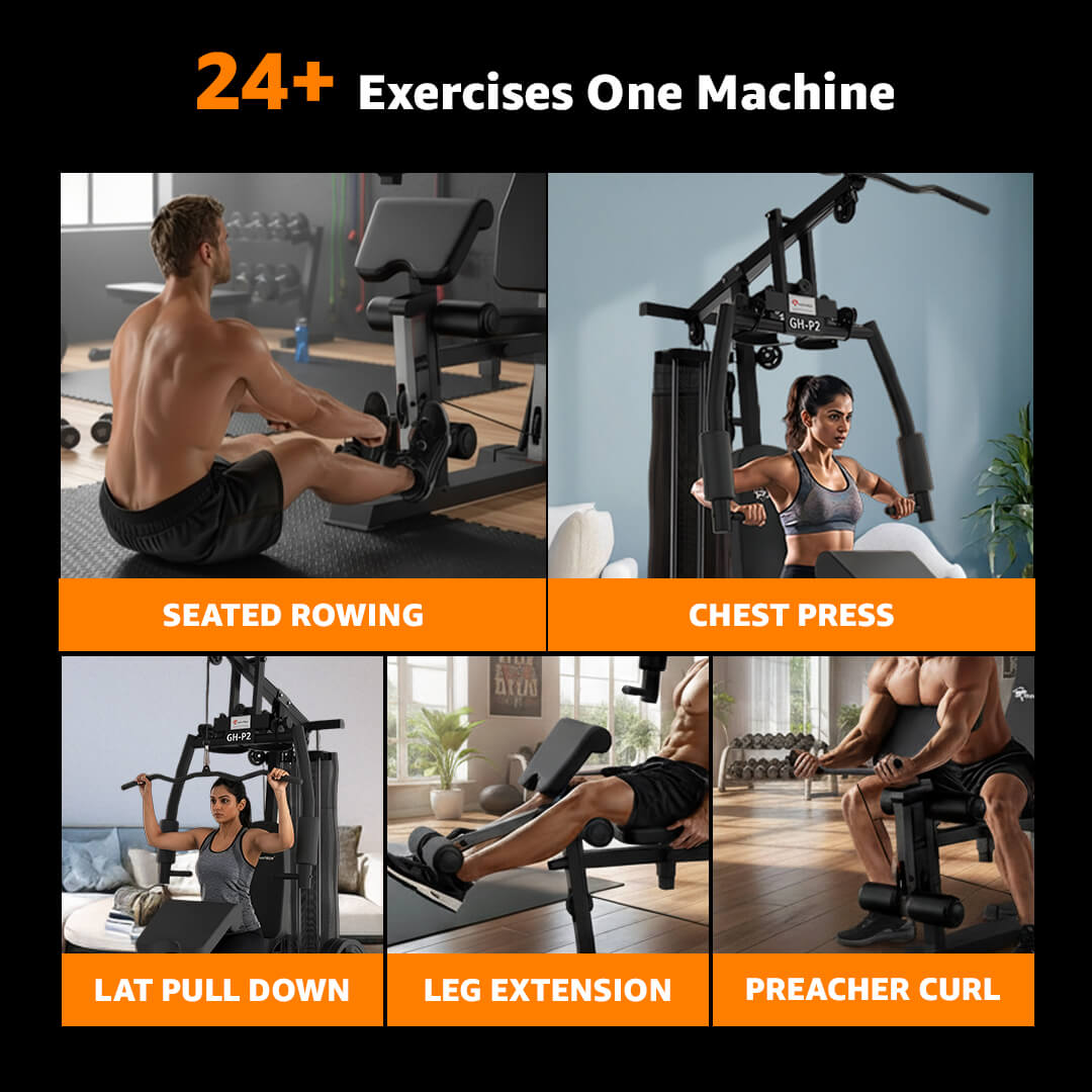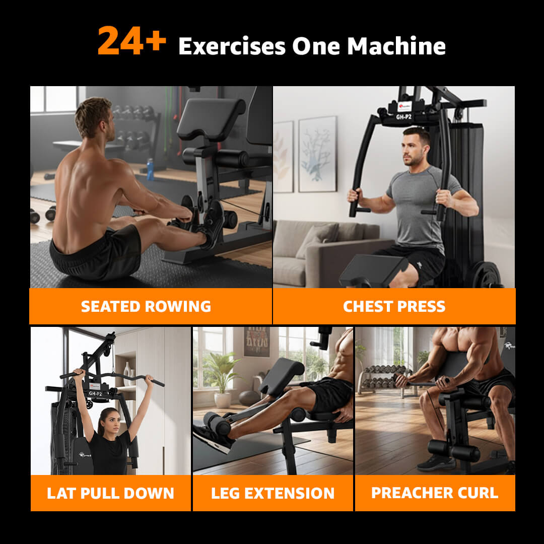 The GH-P2 is a complete home gym set that supports 24 types of exercises for a full-body workout, including chest press, lat pulldown, leg extension, preacher curls, and more. Whether you're training at home or in a professional gym, this equipment allows efficient muscle targeting across upper and lower body groups. It's ideal for users looking for strength fitness equipment that delivers results.